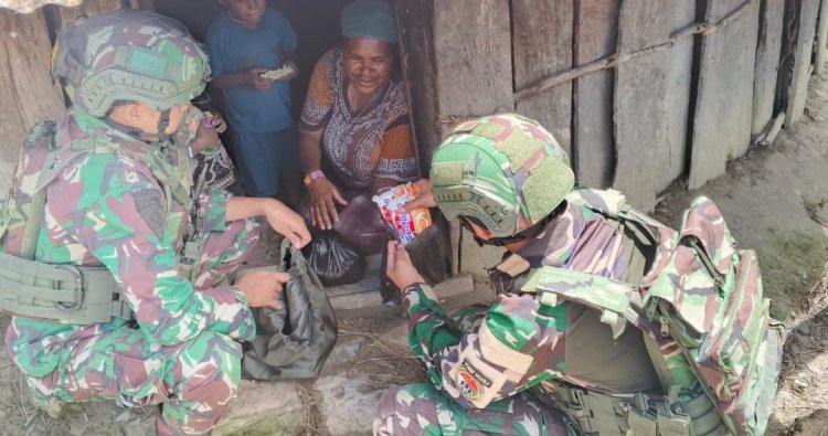 PUNCAK - Di tengah sejuknya udara pegunungan dan senyum hangat warga, Tim Komando (TK) Sinak Pasar Satgas Yonif 142/Kesatria Jaya (KJ) melaksanakan kegiatan Safari Honai yang dirangkaikan dengan pembagian sembako kepada masyarakat di sekitar Distrik Sinak, Kabupaten Puncak, Papua Tengah, pada Sabtu (18/10/2025).