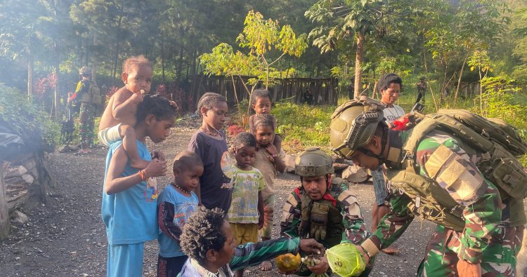 PUNCAK - Kepedulian prajurit TNI terhadap kesejahteraan masyarakat di wilayah perbatasan terus diwujudkan melalui aksi nyata. Personel Satgas Pamtas RI–PNG Mobile Yonif 732/Banau Pos Julukoma yang dipimpin oleh Sertu Jais melaksanakan kegiatan Rosita (Rombongan Satuan Beli Tani) di Kampung Julukoma, Distrik Beoga, Kabupaten Puncak, Senin (20/10/2025).